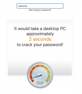 So for example, if we were to use one of the passwords listed in the 25 Most Common Insecure Passwords of 2017 list: welcome